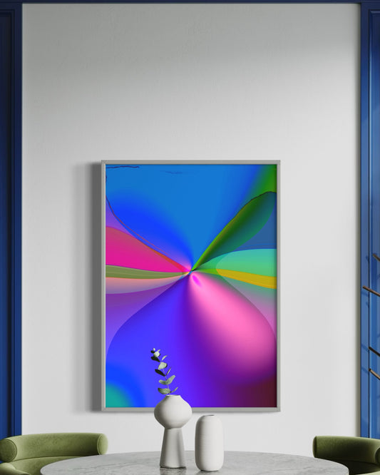 A set of 6 vibrant abstract art pieces with Radiant Spectrum colors and Fluid Horizons. Perfect for modern, dynamic spaces.