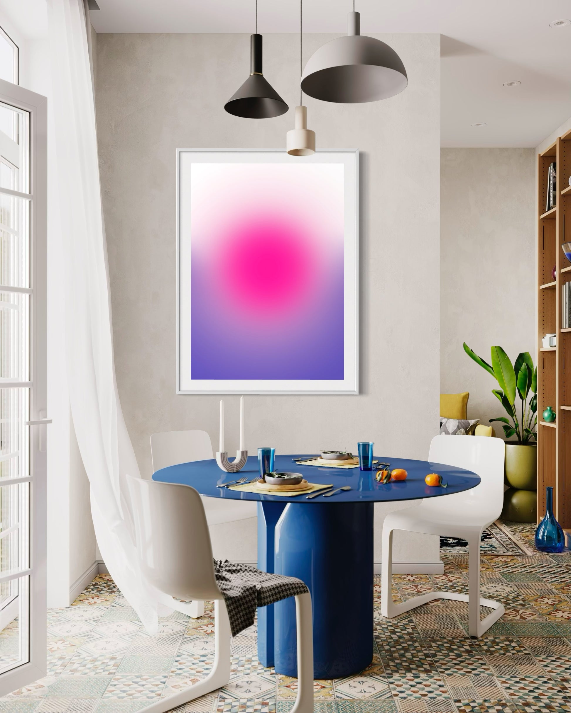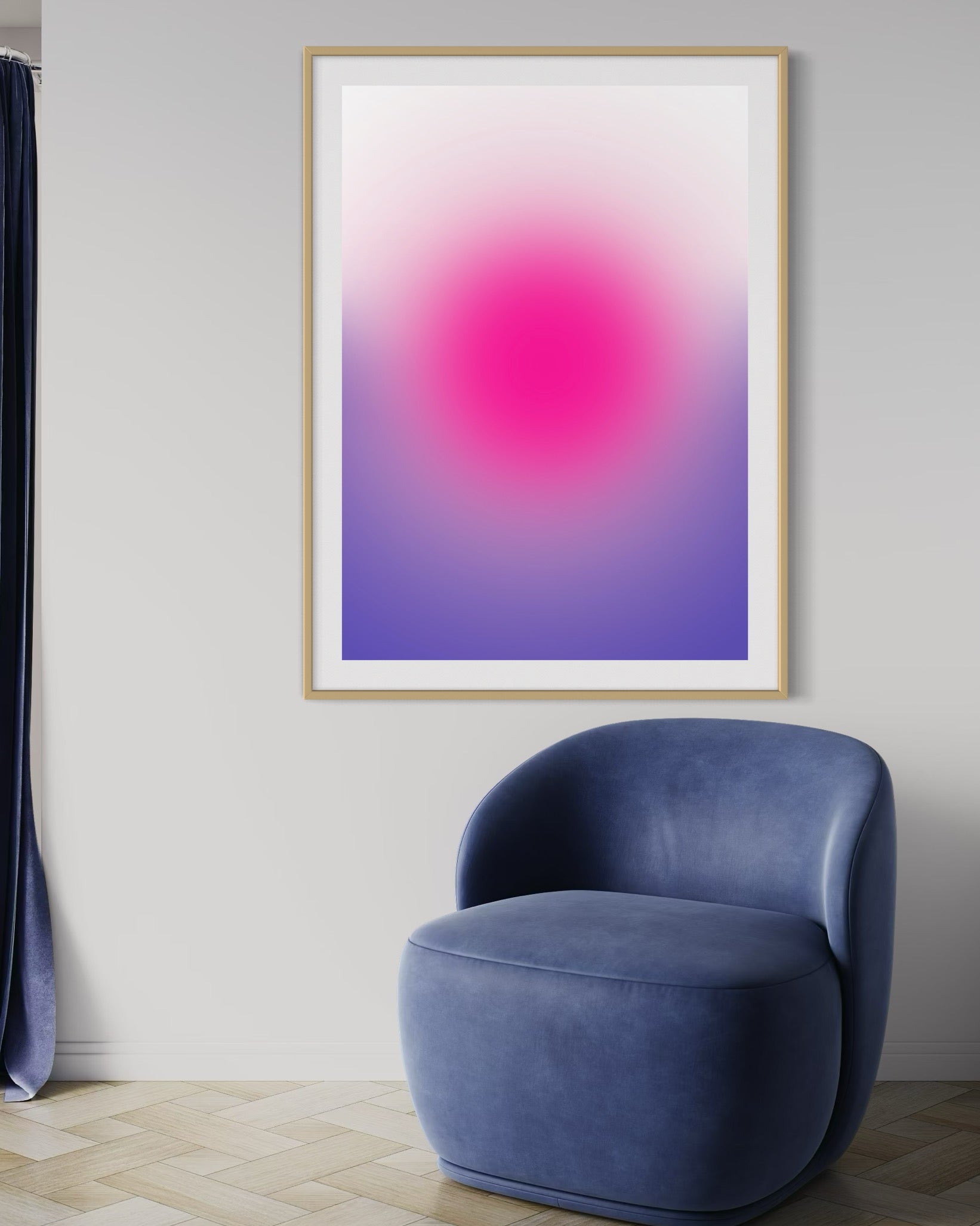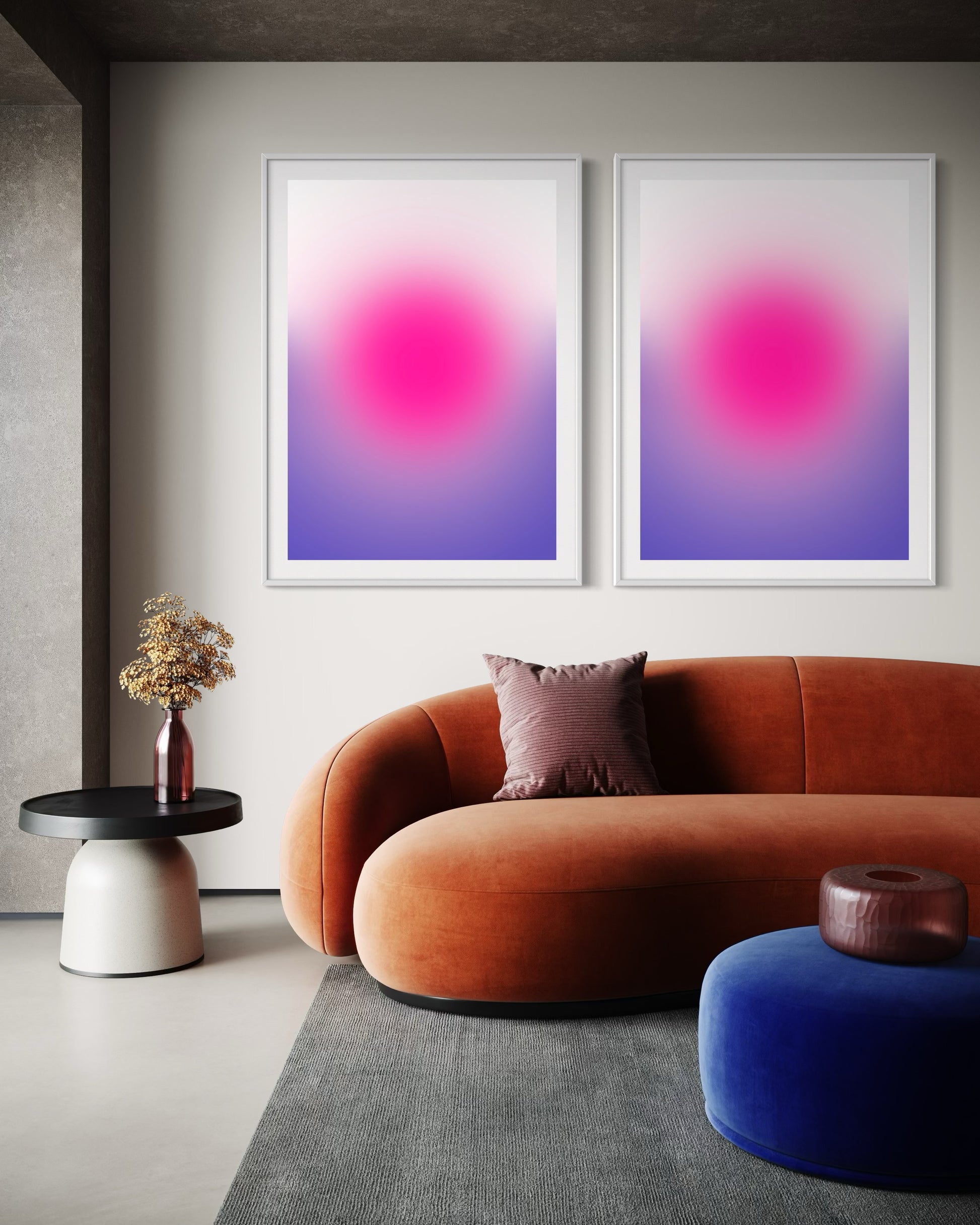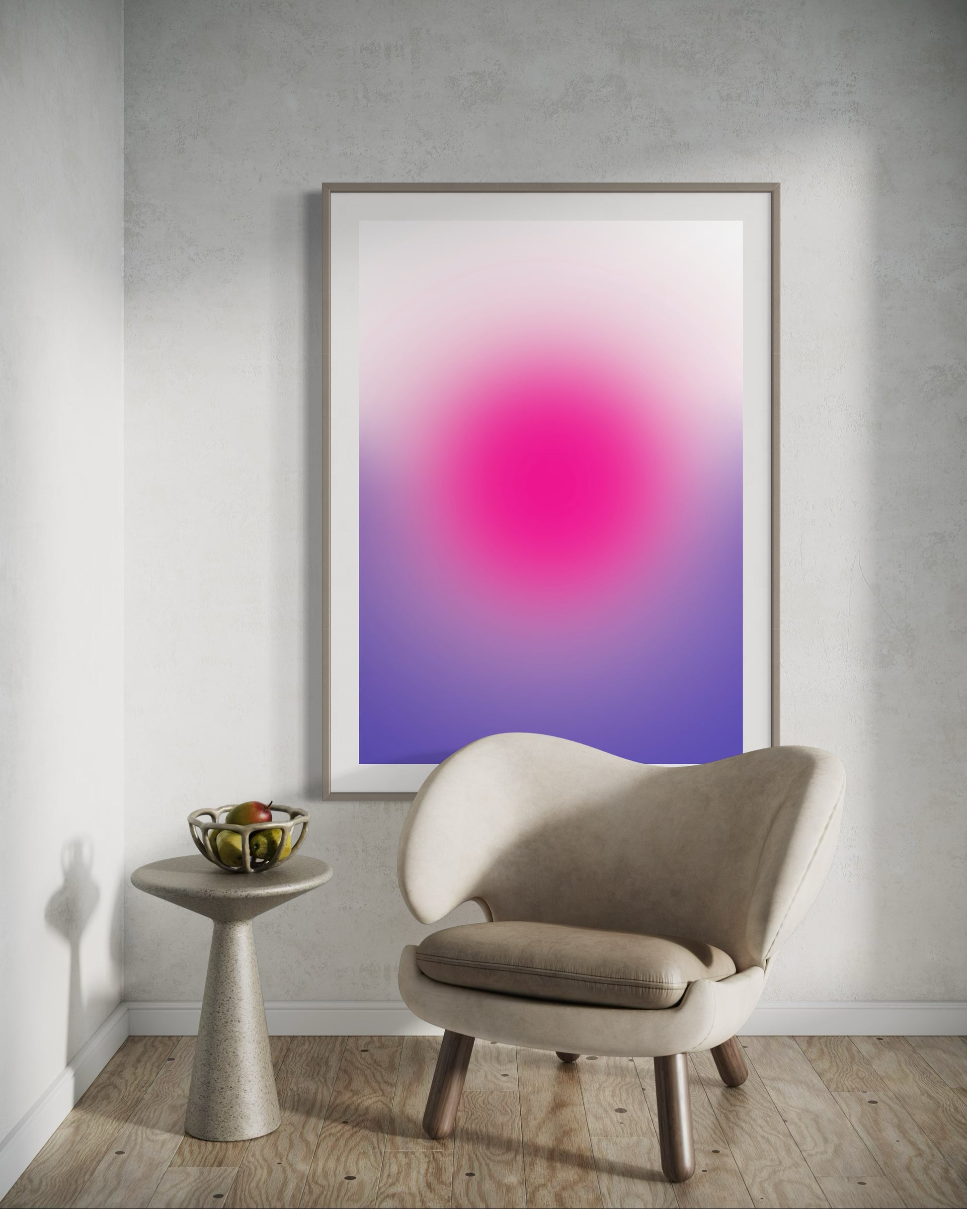 AURA 2 is a vibrant abstract art print that blends radiant pink and purple gradients to evoke a sense of energy and calm. Inspired by aura fields and colour therapy, this digital artwork brings a bold yet balanced presence to any modern space. Perfect for those who appreciate minimalist design with a spiritual edge, AURA 2 makes a striking addition to living rooms, studios, or creative workspaces.