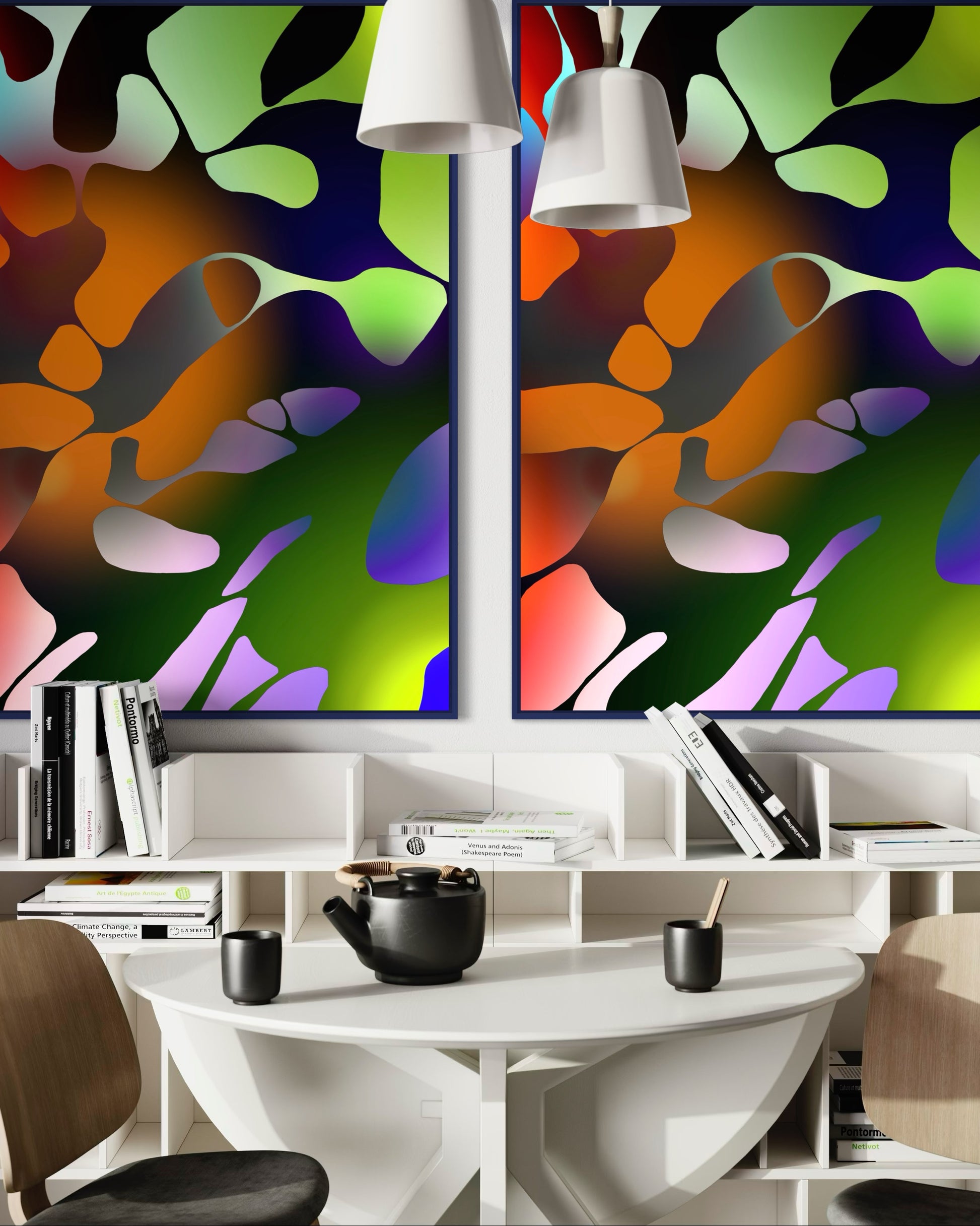 This piece blurs the line between natural rhythm and digital abstraction, making it a striking focal point for any interior. Perfect for modern living spaces, studios, or offices seeking a burst of color and energy.