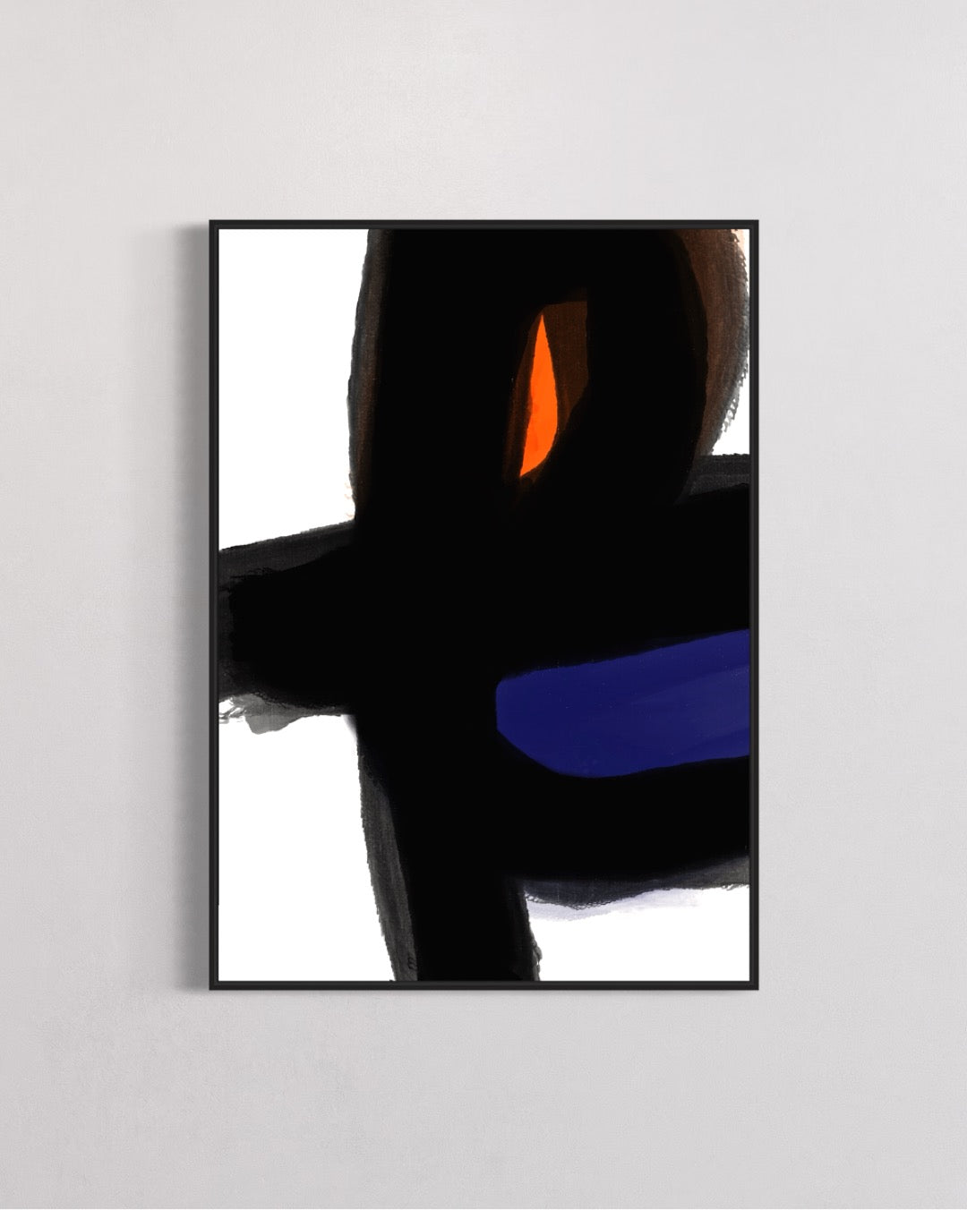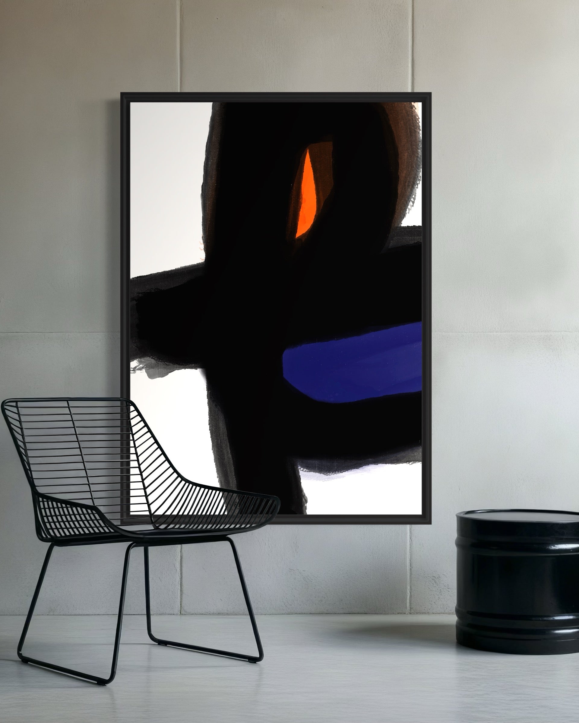 Step into the mystery of SHADOW PORTAL, a bold and expressive artwork that captures the tension between darkness and light. With deep black strokes dominating the canvas, this piece is punctuated by a fiery orange glow and a deep blue accent, evoking a sense of depth and intrigue. The raw, gestural composition creates a visual experience that is both striking and thought-provoking