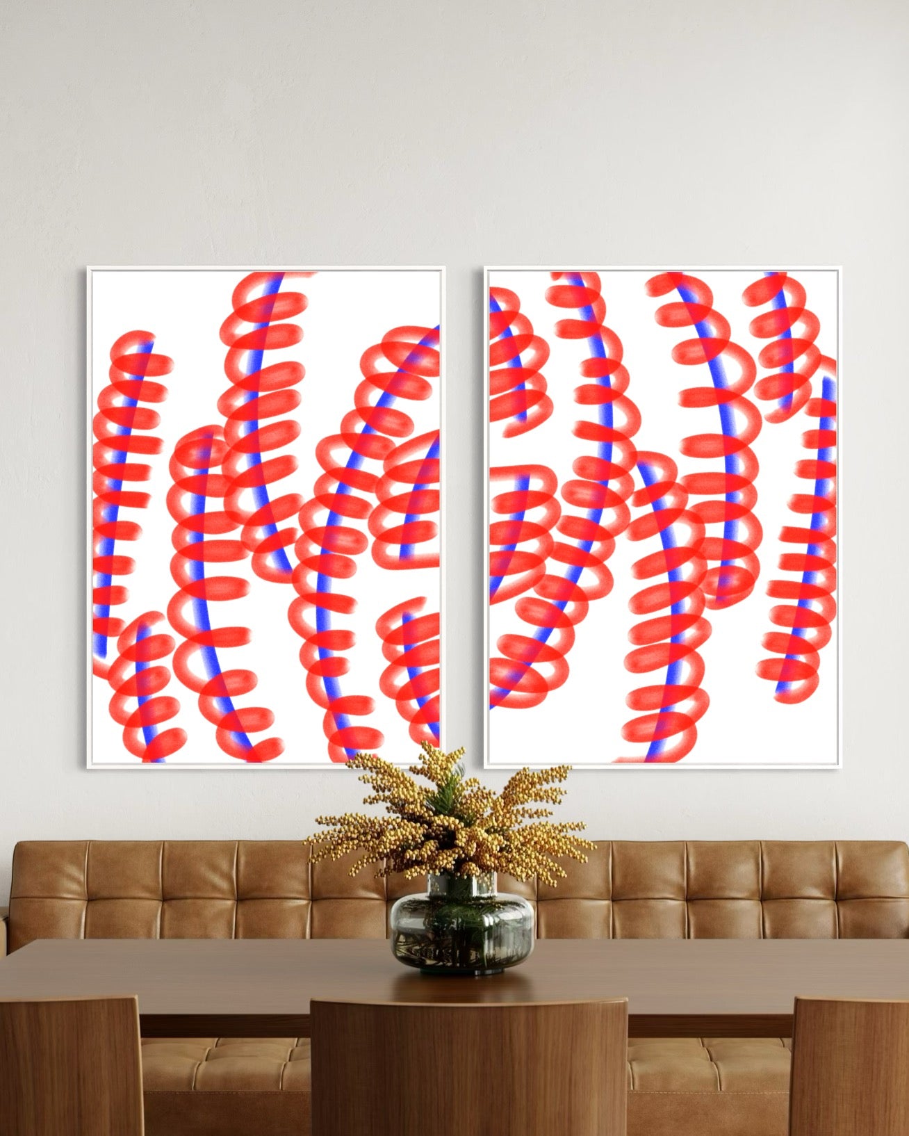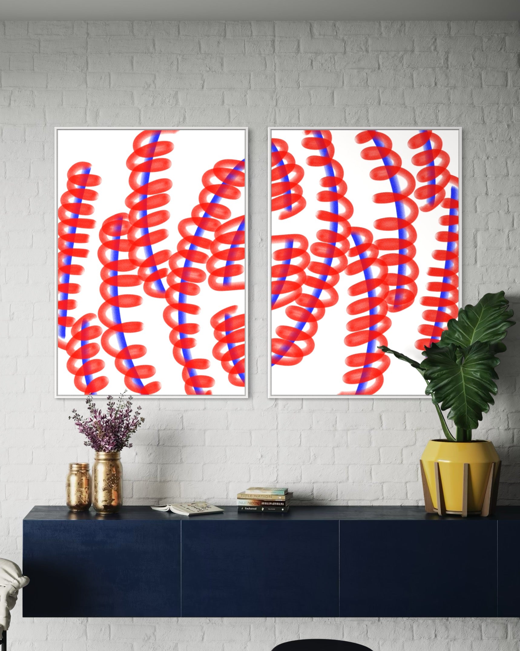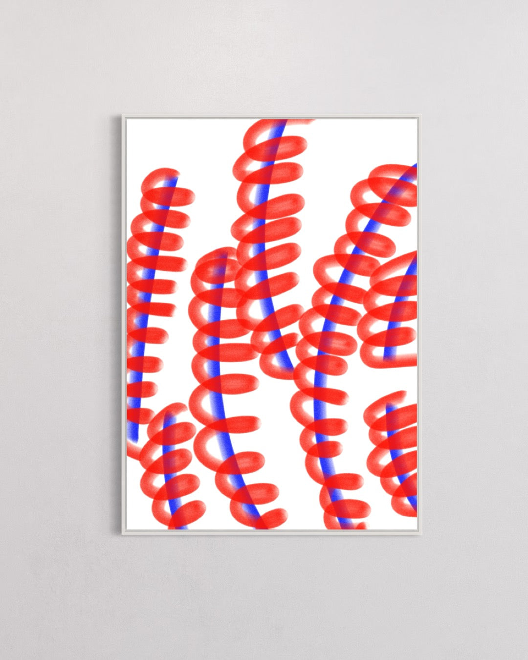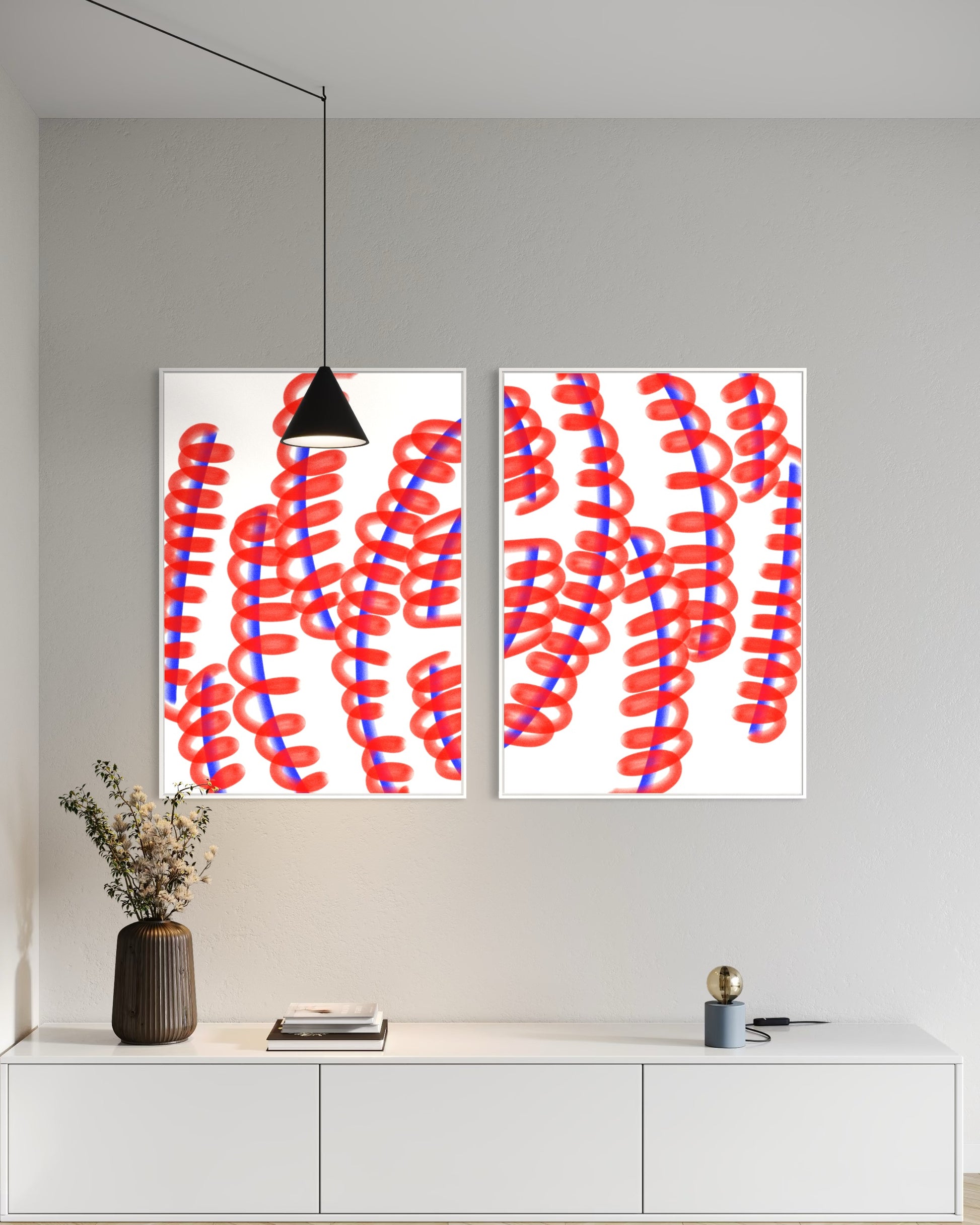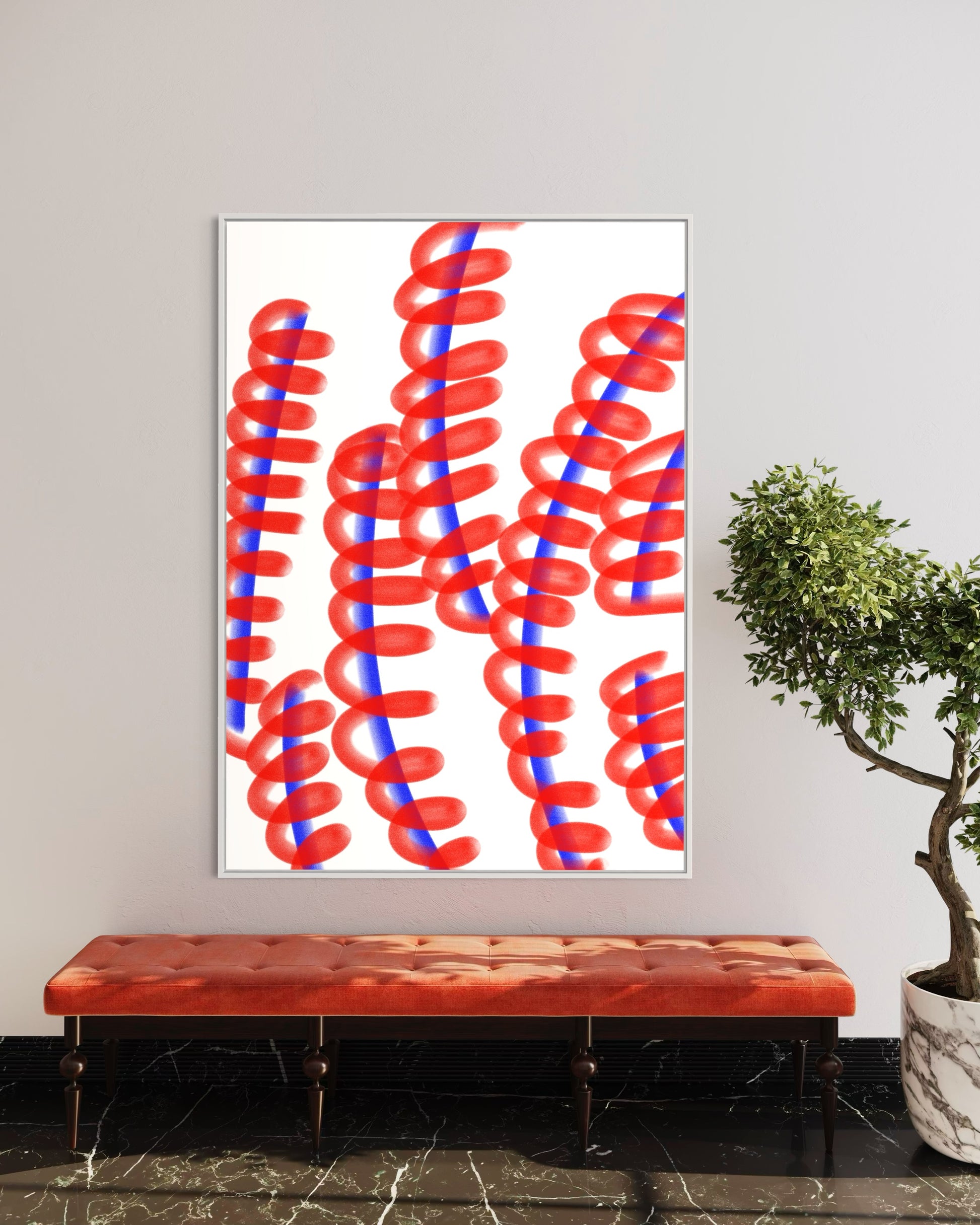 Spirals in Motion Poster is a vibrant and expressive piece that adds life and vibrancy to any space. The design features red spirals wrapping around soft blue lines, creating a sense of endless movement. Perfect for art enthusiasts and those looking to spark curiosity and conversation. Relevant for home decor, gifting, and art appreciation.