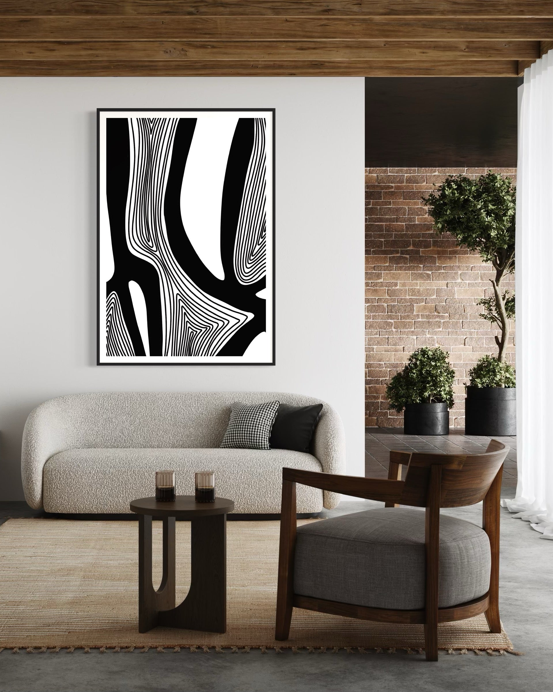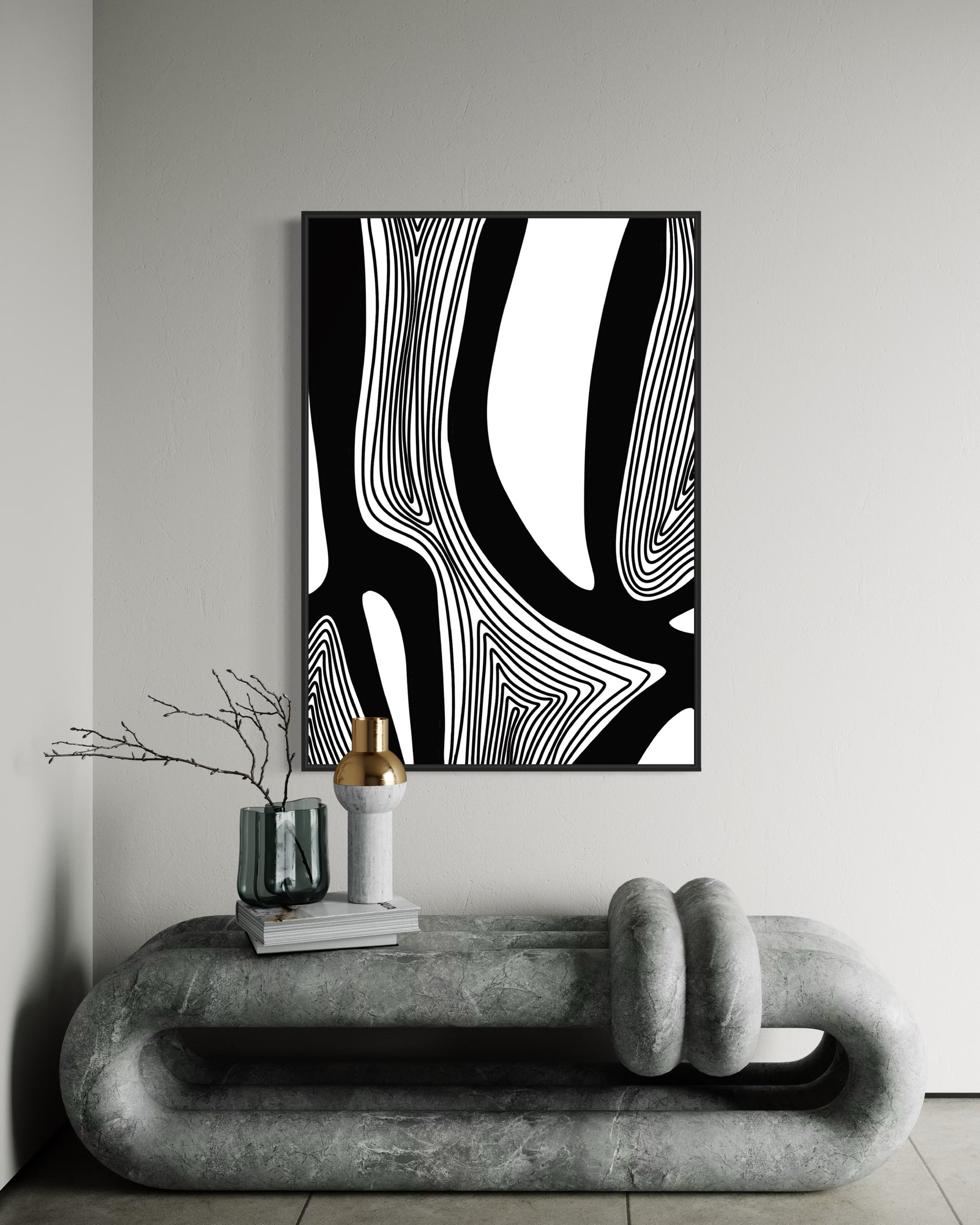 This piece pairs seamlessly with others in the Unruly Lines collection, allowing for a striking gallery wall or a cohesive design statement. Whether displayed alone or alongside its counterparts, Unruly Lines P1 brings a bold, contemporary edge to any interior.